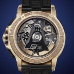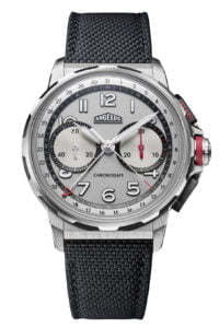 De Chronodate is verkrijgbaar in drie gelimiteerde series van 25 stuks waarvan de esthetiek is geïnspireerd op zowel historische Angelus-referenties als de strakke, opengewerkte lijnen van zijn recente stukken. Met zijn modulaire kast van 42,5 millimeter combineert de Chronodate rood goud, titanium en carbon. Het automatische bicompax-chronograafuurwerk is omgeven door een perifere datum – precies zoals het originele model.