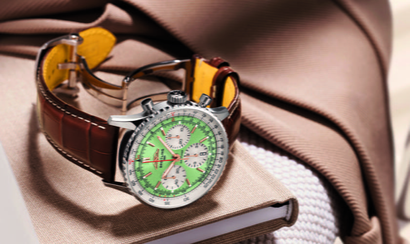 Met recht mag Breitling de nieuwe Breitling Navitimer B01 in 41, 43 en 46 millimeter kastomvang een nieuw icoon noemen. Het model komt nu ook met een muntgroene wijzerplaat. Tijdens een spectaculaire introductie aan boord van een Airbus 321 met Breitling ceo Georges Kern aan de stuurknuppel werd een totaal