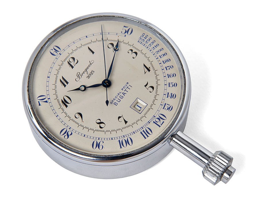 The Breguet Museum and its President and CEO, Marc A. Hayek, have acquired an exceptional dashboard chronograph created for Bugatti at an auction that took place on Saturday 6th of February, 2016, in Paris. The Breguet No. 2023 watch testifies to the brilliant and remarkable diversification demonstrated by the Maison throughout its history.