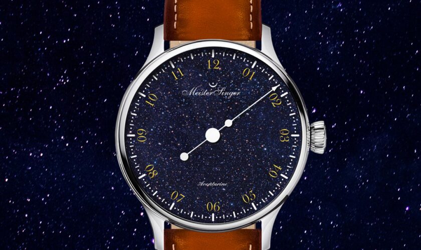 MeisterSinger Pangaea Aventurijn: tijd die fonkelt De horloges van MeisterSinger staan bekend om hun bijzondere manier van tijd weergeven: met één enkele, lange wijzer die naar fijne vijfminutenmarkeringen wijst. Net als bij de eerste uurwerken uit de achttiende eeuw draait het niet om haast, maar om het beleven van het