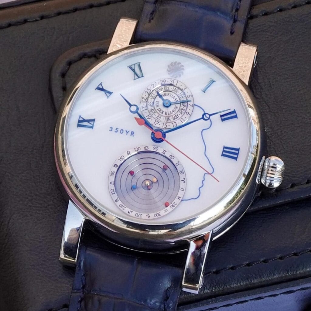 Een bijzonder moment tijdens de vernissage was de onthulling van het horloge dat speciaal is ontworpen door het Nederlandse merk Christiaan van der Klaauw ter gelegenheid van de 350ste verjaardag van de balansveer. Dit limited edition horloge toont op de wijzerplaat zes planeten, met Saturnus als laatste. Het is een eerbetoon aan de ontdekking van de planeten in de tijd van Huygens, met Saturnus als de verste planeet die toen bekend was. Het mechanisme achter dit horloge is net zo indrukwekkend als het ontwerp: de beweging van het oranje bolletje op de wijzerplaat volgt de 29,5 jaar durende omlooptijd van Saturnus rond de zon.
