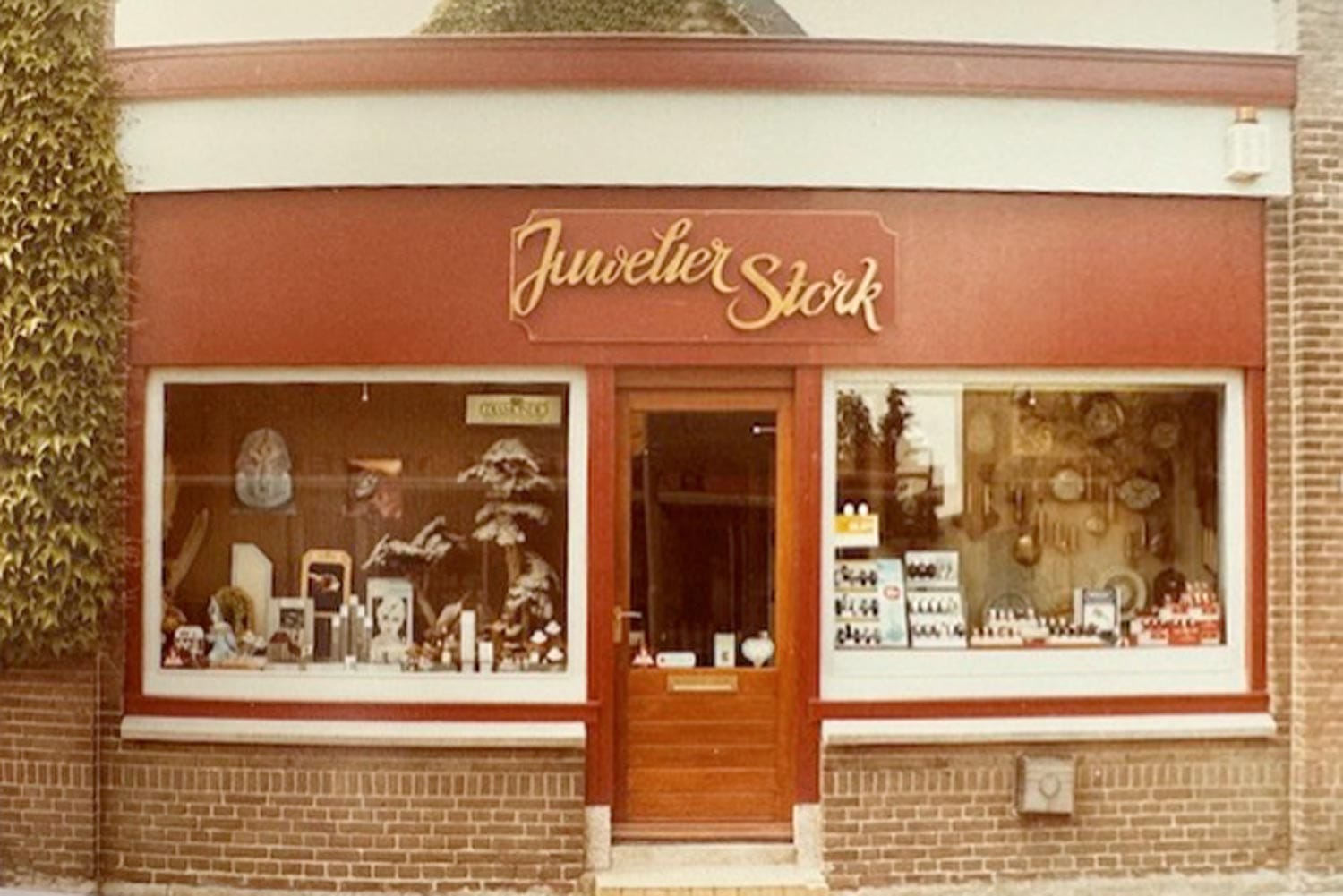 In 1985 begon het allemaal: twee broers, Arjo en Mark Stork, besloten hun gedeelde passie voor het juweliersvak om te zetten in een eigen zaak. De allereerste winkel opende haar deuren in Roelofarendsveen, een bescheiden maar ambitieuze stap voor twee jonge ondernemers met liefde voor edelmetalen, uurwerken en ambachtelijk vakmanschap. Op een van de oudste foto’s uit deze tijd zien we Arjo en Mark samen in hun allereerste winkel.
