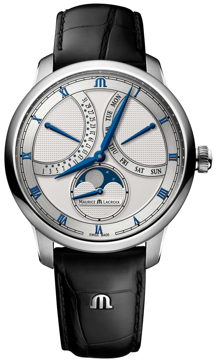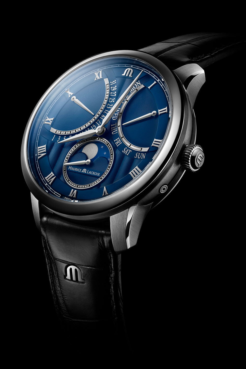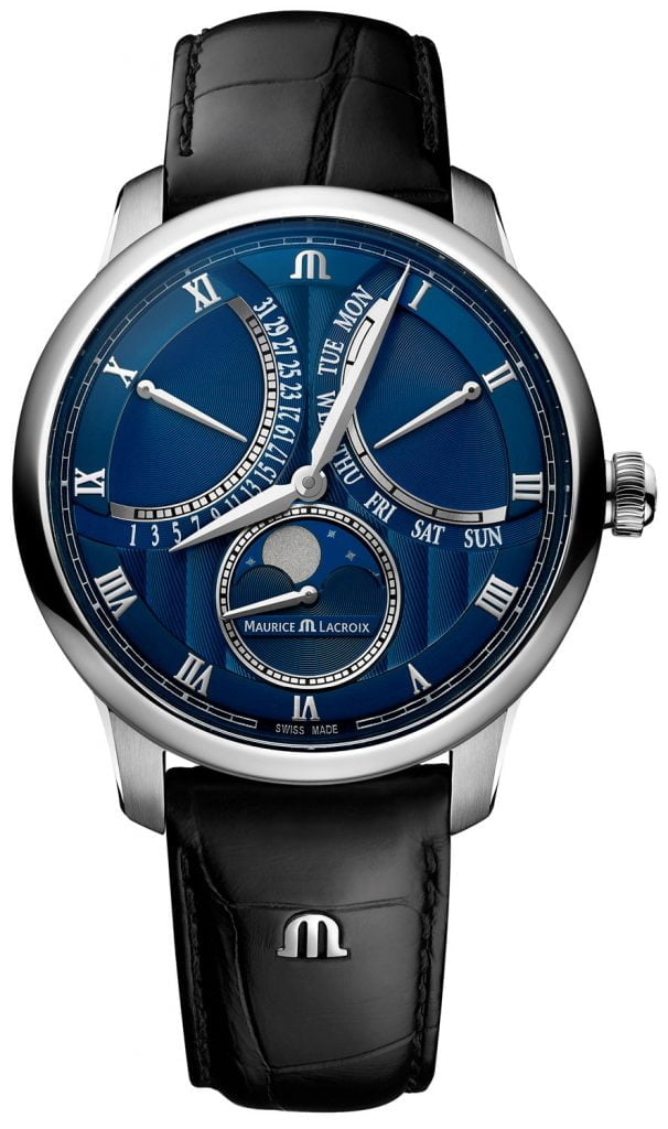Het horloge wordt aangedreven door het manufactuur ML 292 kaliber. Het exclusieve automatische uurwerk is beproefd en getest en levert bewezen betrouwbaarheid. Maurice Lacroix heeft een in-house ontworpen complicatiemodule ingebouwd die een retrograde dag, een retrograde datum en een maanfase omvat. Het kaliber is ook indrukwekkend afgewerkt, in overeenstemming met de kwaliteitsnormen van Maurice Lacroix en passend bij de hoge normen van de wijzerplaat en kast.