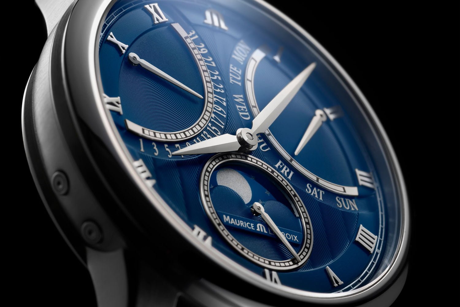 Al deze aanduidingen worden weergegeven op een snailed blauwe of zilvergrijze Clous de Paris wijzerplaat. De overige oppervlakken zijn geparelstraald, waardoor een mat effect ontstaat onder de geblauwde wijzers. Het Masterpiece wordt geleverd in een roestvrijstalen kast van een mannelijke 43 millimeter. De band is gemaakt van blauw of zwart kalfsleer.