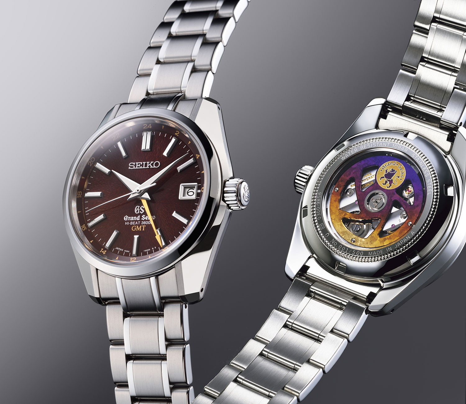 Fast and limited. The basis for this 500-piece limited edition Seiko is the Grand Seiko Hi-Beat 36000 GMT calibre and its appearance shows a strong resemblance to the SBGJ005, the watch that won the ‘Petite Aiguille’ at the Grand Prix d’Horlogerie de Genève in 2014. Totally new in this Limited Edition with GMT function are the special dial and rotor.