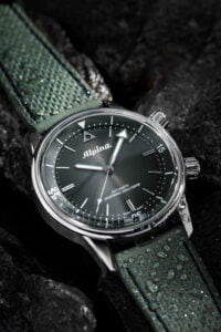 Het Super Compressor 10 Seastrong duikhorloge, een van de oudste horloges horloges van het huis, werd voor het eerst geïntroduceerd in 1969. Waterbestendig tot 200 meter, antimagnetisch en voorzien van een mooi, ontspiegeld glas. Voor deze nieuwe versie koos Alpina voor heel donker groen, van wijzerplaat tot band.