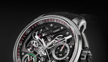 In deze nieuwe Angelus-collectie staan cirkelvormen en opengewerkte structuren centraal. De kast bestaat uit twee delen: een lichte maar stevige koolstofcomposiet container die het uurwerk beschermt, en een laag van zes titanium hoofdelementen die de container op zijn plaats houdt. Het horloge bevat het nieuwe handopwindbaar A-310-kaliber met een vliegende tourbillon op 6 uur. De grote Arabische cijfers lijken te zweven en de PVD-behandelde bruggen voegen lichtheid toe aan het ontwerp. De kleine secondewijzer op 9 uur vormt een visueel tegenwicht voor de grote veerton tussen 12 en 1 uur en de vliegende tourbillon.