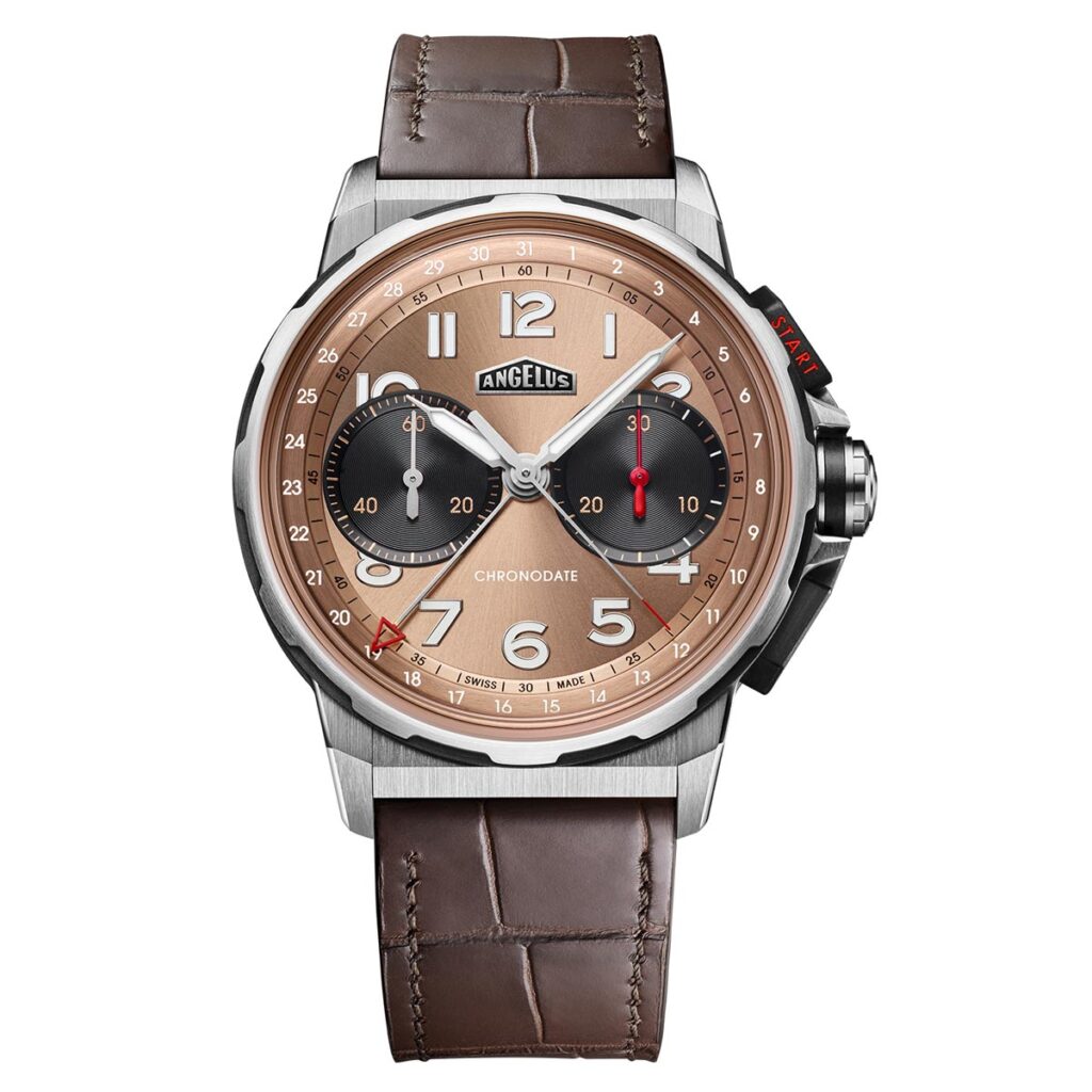 De Chronodate dient als een historische herinnering aan de oorsprong van het merk, aangezien Angelus in de jaren 1930 een toonaangevende fabrikant van chronografen werd. Deze horloges hadden een kleinere diameter, in lijn met de smaak van die tijd, en tellers die opvielen door bijzonder groot en goed leesbaar te zijn. Het is dus niet meer dan passend dat Angelus nu een Chronodate presenteert met tellers met een grote diameter en die gemakkelijk af te lezen zijn.