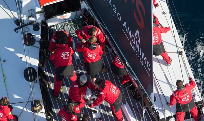 Perhaps superfluously: Anonimo started in 1997 when Panerai closed up shop. Closed up shop in Florence, to be precise, and moved to Switzerland. Anonimo made sure that the watch tradition was maintained for the region. The watch cases of the current collection are still being made by hand in ateliers in Florence that have been there since 1939. The movements are Swiss. The combination of Swiss precision and Italian design creates a modern reinterpretation of the famous professional watches that used to be produced on the banks of the Arno River for military divers of the Italian Marina Militare. The same applies to the 2016 collection that has now been expanded with the Nautilo Sailing Edition. This watch, with obvious historical features and characteristics, is introduced during a presentation in Marseille, attended by highly experienced French skipper Lionel Péan – he is also the ambassador for Anonimo – and the SFS team. We’re on the eve of the 64th annual Giraglia, and the captain and crew can hardly wait for the starting pistol.