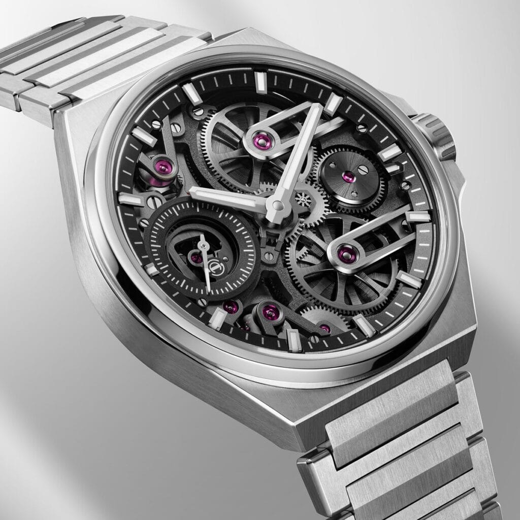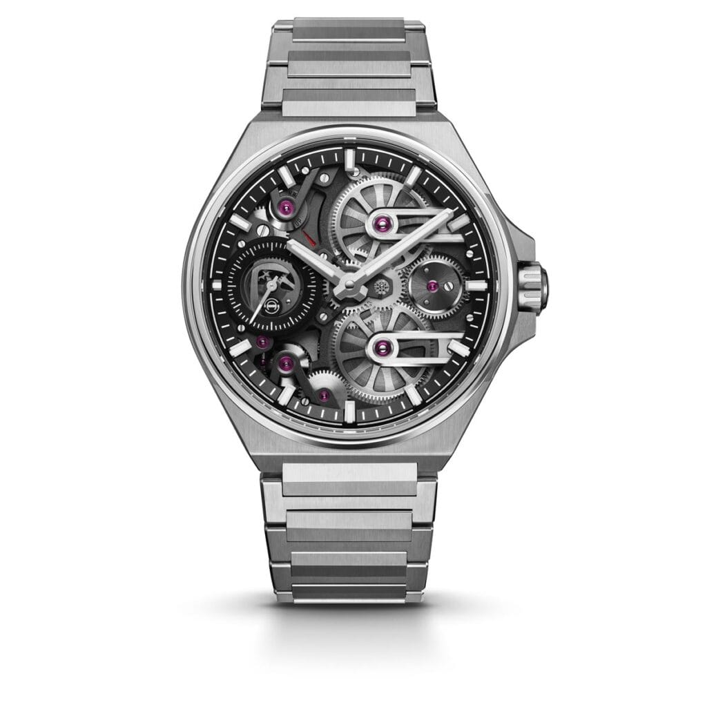 De wijzerplaat van de One Week is een ware weergave van technische complexiteit, met een zwarte minutenring en een opengewerkte kleine secondewijzer. De indexen zijn voorzien van Super-LumiNova®, wat zorgt voor uitstekende leesbaarheid, zelfs in het donker. Het saffierglas aan de voor- en achterkant beschermt tegen krassen en biedt tegelijkertijd een prachtig uitzicht op het volledige uurwerk. De titanium band met dubbele vouwsluiting zorgt voor een comfortabele pasvorm en versterkt het robuuste, maar verfijnde karakter van dit bijzondere horloge.