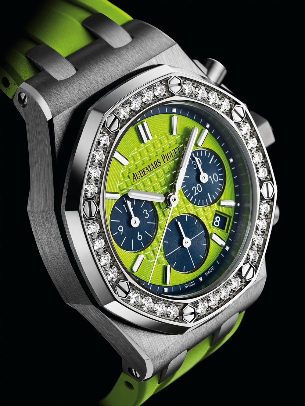The result is however quite expressive and captures perfectly that summer feeling while adding even more personality to the watch. The new 37mm Royal Oak Offshore Chronograph is now available in five of those vibrant colors, with contrasting subdials for improved legibility yet matching rubber strap. It is a watch for women who like to stand out and do so with quality and confidence.