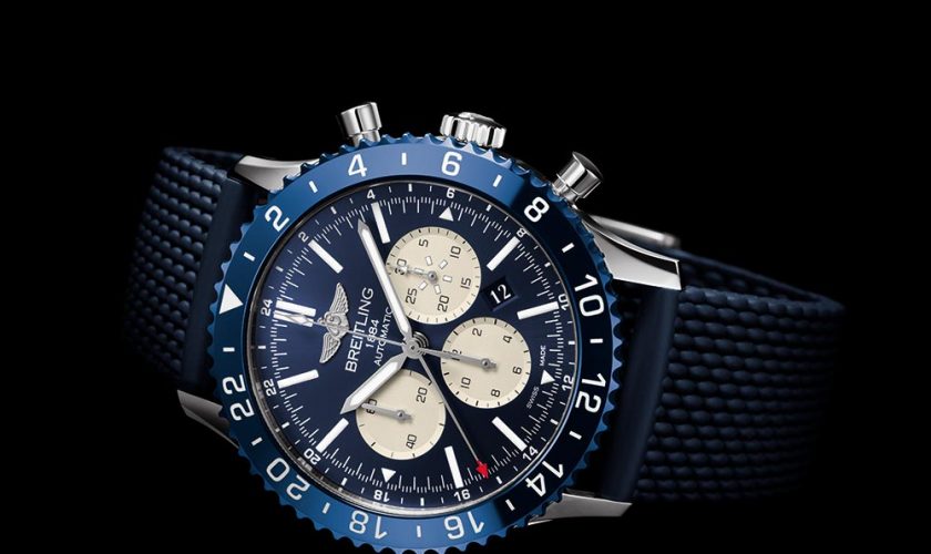 The Breitling Chronoliner houses a Manufacture Breitling Caliber B04 powering an ultra-convenient dual timezone system and is issued in a limited series enhanced by its all-blue livery. An exclusive new face for this aviation chronograph with a truly timeless look.
