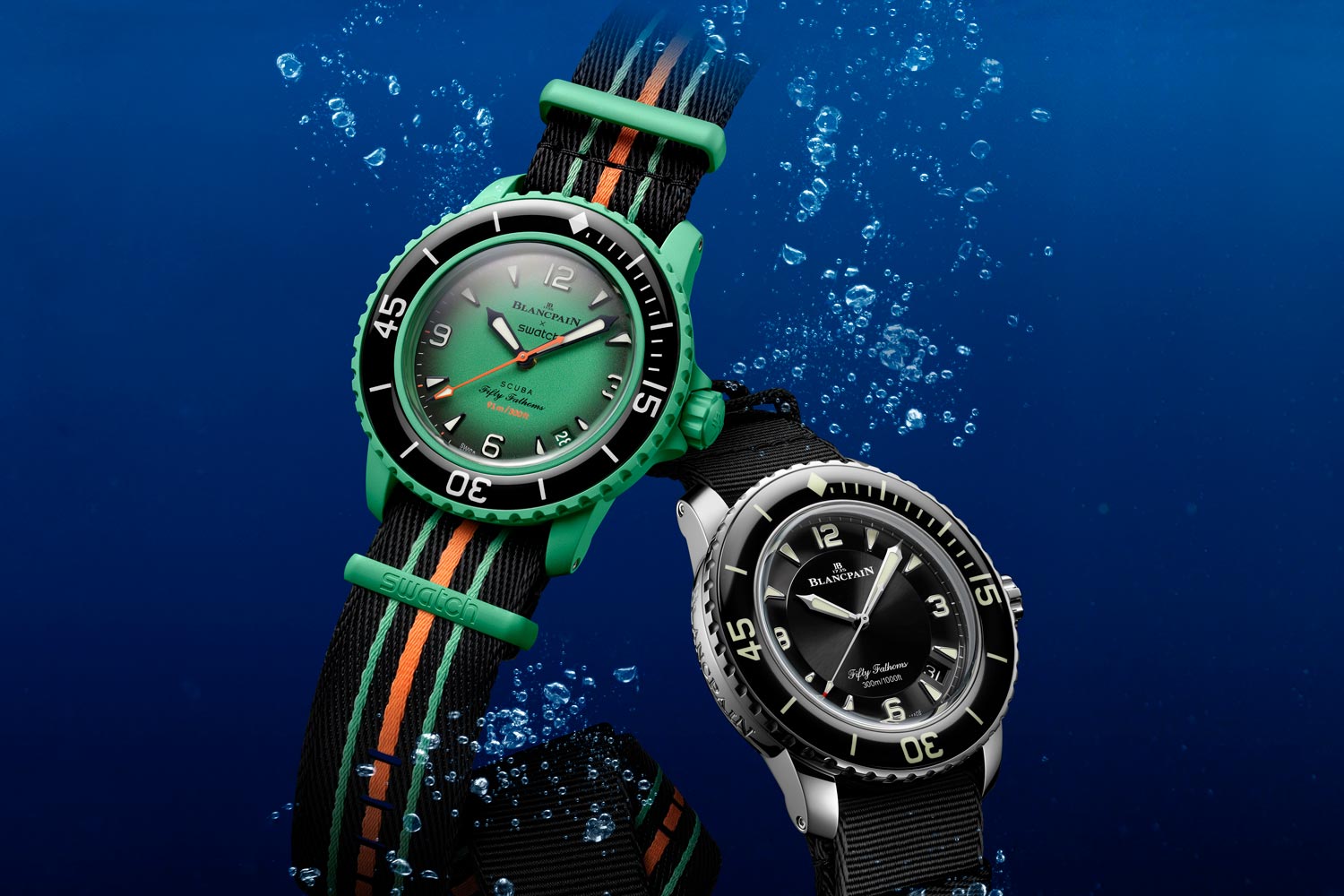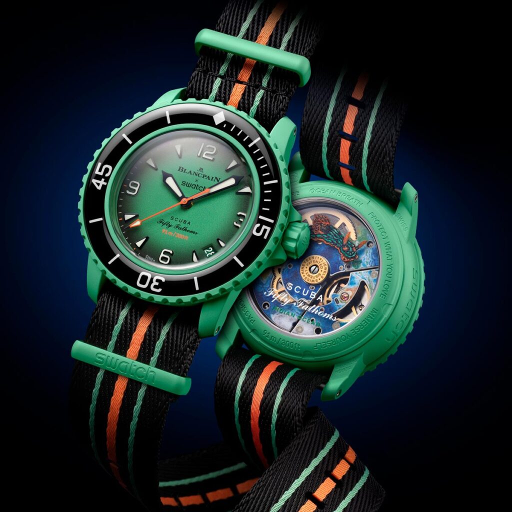 Blancpain en Swatch doken samen in een bijzondere samenwerking. Geïnspireerd op de vijf wereldoceanen, creëerden de twee horlogemerken samen vijf speciale modellen ‘Blancpain X Swatch Bioceramic Scuba Fifty Fathoms’. De duikhorloges zijn uitgebracht ter ere van de 70e verjaardag van het Blancpain Fifty Fathoms duikhorloge.