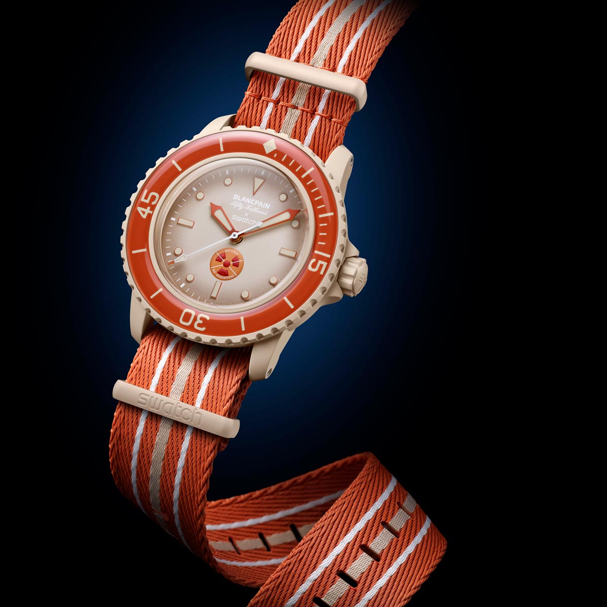 Voor een trotse Marc A. Hayek, president en CEO van Blancpain, die in 2003 de Fifty Fathoms opnieuw lanceerde, heeft de samenwerking met Swatch ook symbolische waarde: ‘Zonder Swatch zou de Zwitserse horloge-industrie het simpelweg niet hebben overleefd. We waren het aan onszelf verplicht om met dit merk, een even grote pionier als Blancpain samen te werken. Het resultaat is een zeer geslaagde versie van ons iconische model, opnieuw geïnterpreteerd, op een heel eigen manier vanuit een heel eigen visie.’