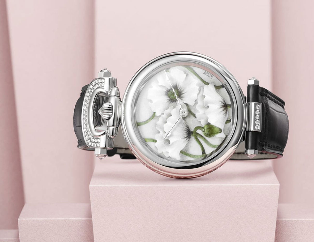 Pascal Raffy, owner of Bovet, is a man on a mission. He wants to push Bovet to the top and he also wants to safeguard and perpetuate the traditional decorative arts of watchmaking. Focussing on the decorative part led to a very interesting cooperation. Ilgiz Fazulzyanov, is a renowned artist & jeweller from Russia that has dedicated the past two decades to the mastery of enamelling. The received of several jewellery design awards and finds inspiration in nature that he transcends in organic patterns and shapes. Fazulzyanov and Raffy share common values for uniqueness and passion of fine art. The fact that Pascal Raffy and Ilgaz Fazulzyanov proudly present several unique timepieces featuring stunning enamelled dials is only logical to them. The result exceeds logic.
