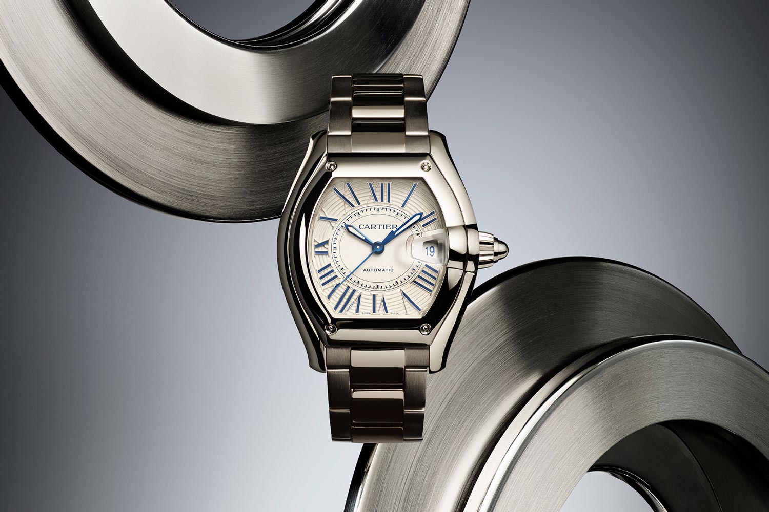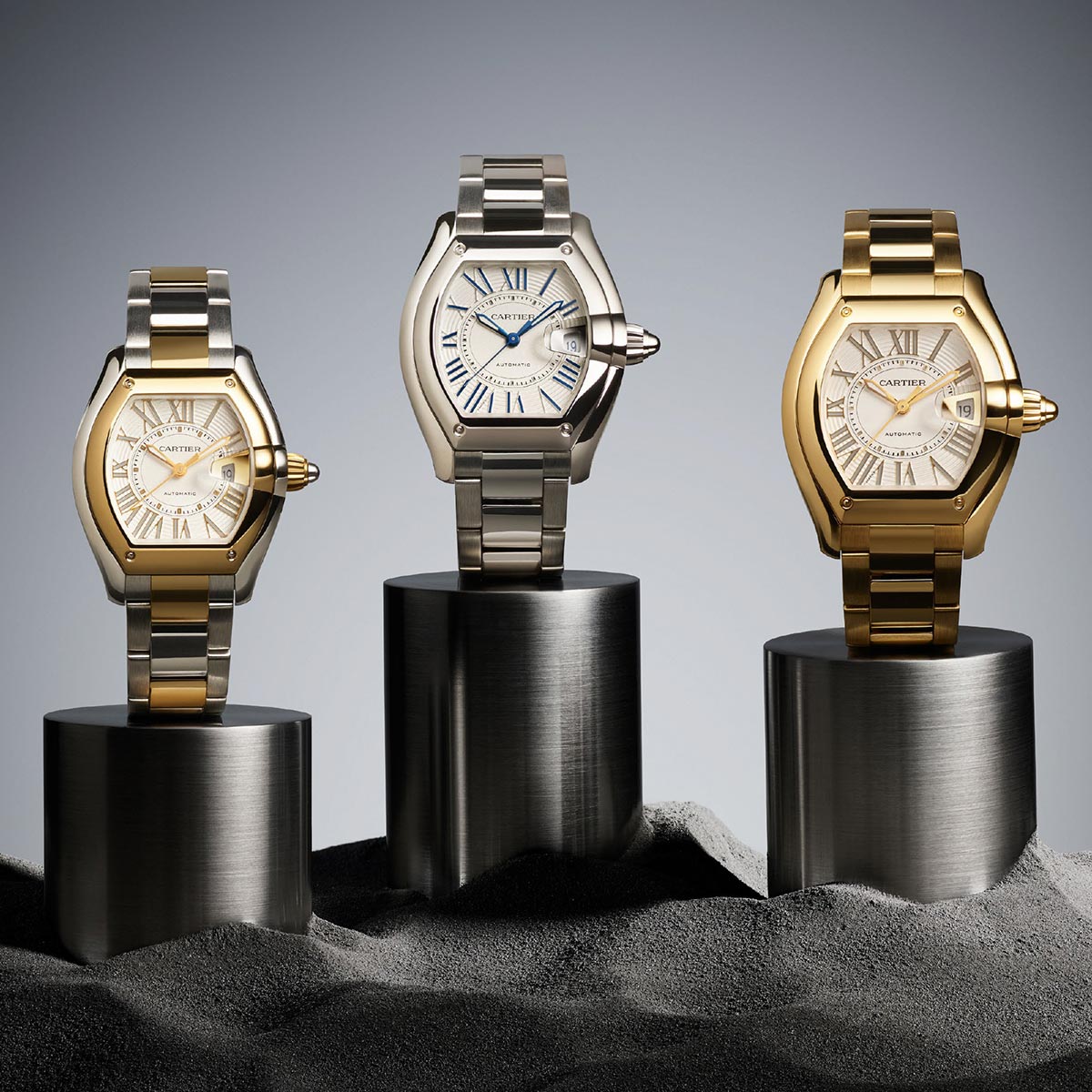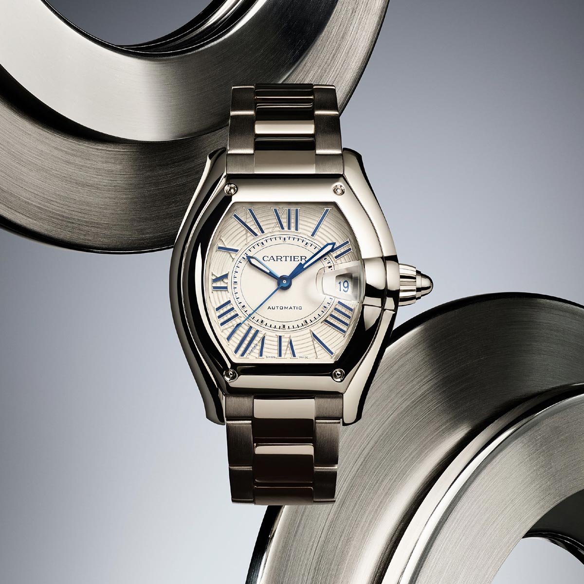 De Roadster is een horloge met een gestroomlijnd ontwerp dat de tijd lijkt te versnellen. Al bij de lancering in 2002 viel het model op doordat het inspiratie vond in de mechanische carrosserie. Met zijn door snelheidsmeters geïnspireerde wijzerplaat, conische kroon, koplampvormige datumvergroter, klinknagels en schroeven had het horloge een gedurfd, krachtig ontwerp dat de interesse van de gebroeders Cartier in de mechanische wereld en technologische vooruitgang weerspiegelde.