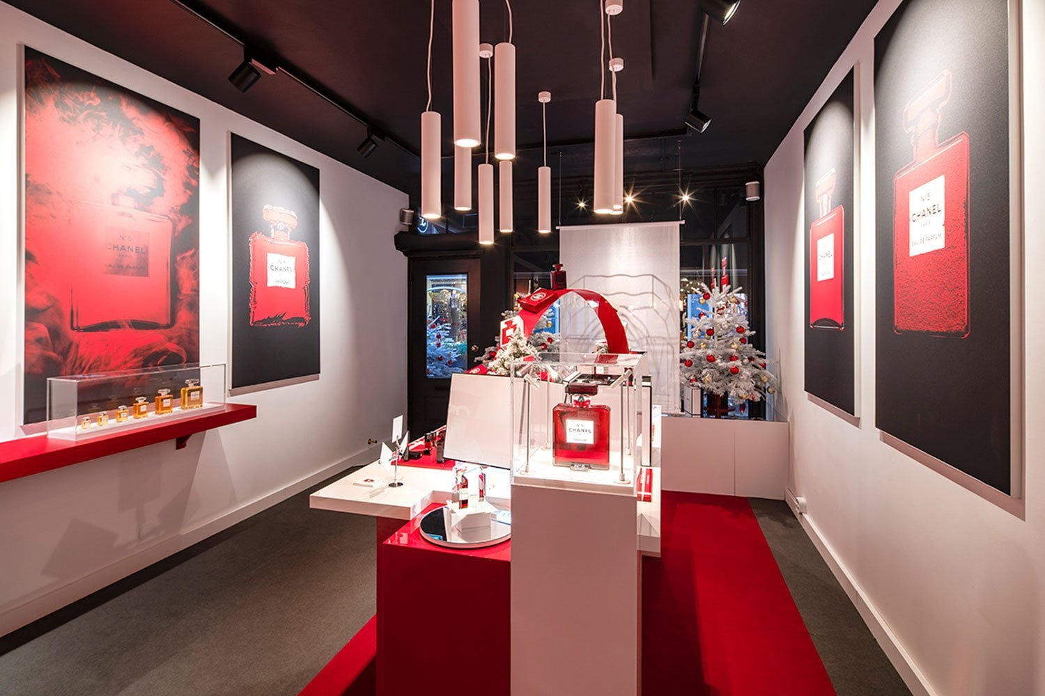 The intimite styled Chanel boutique shows all make up products as well as a little library with books of the leading fashion brand and her jewellery and watches. The big eyecather is the baccarat red Chanel No. 5 bottle of which only three are available throughout the Benelux. Hurry up, the brilliant pop up store will close its doors @ January 6th, 2019! The store is located on Runstraat 22.