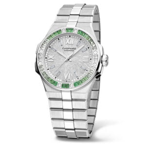 De Alpine Eagle Summit bestaat uit vier nieuwe modellen met een diameter van 41 millimeter, met wijzerplaten in luminescerende tinten en randen bezet met edelstenen die in kleur verlopen. Trouw aan de toewijding van de fabrikant aan duurzame luxe, zijn deze horloges vervaardigd in ethisch 18-karaats geel-, wit- of roségoud. Ze kloppen allemaal op het ritme van het Chopard 01.15-C-uurwerk, waarvan de precisie wordt gegarandeerd door een chronometercertificering.