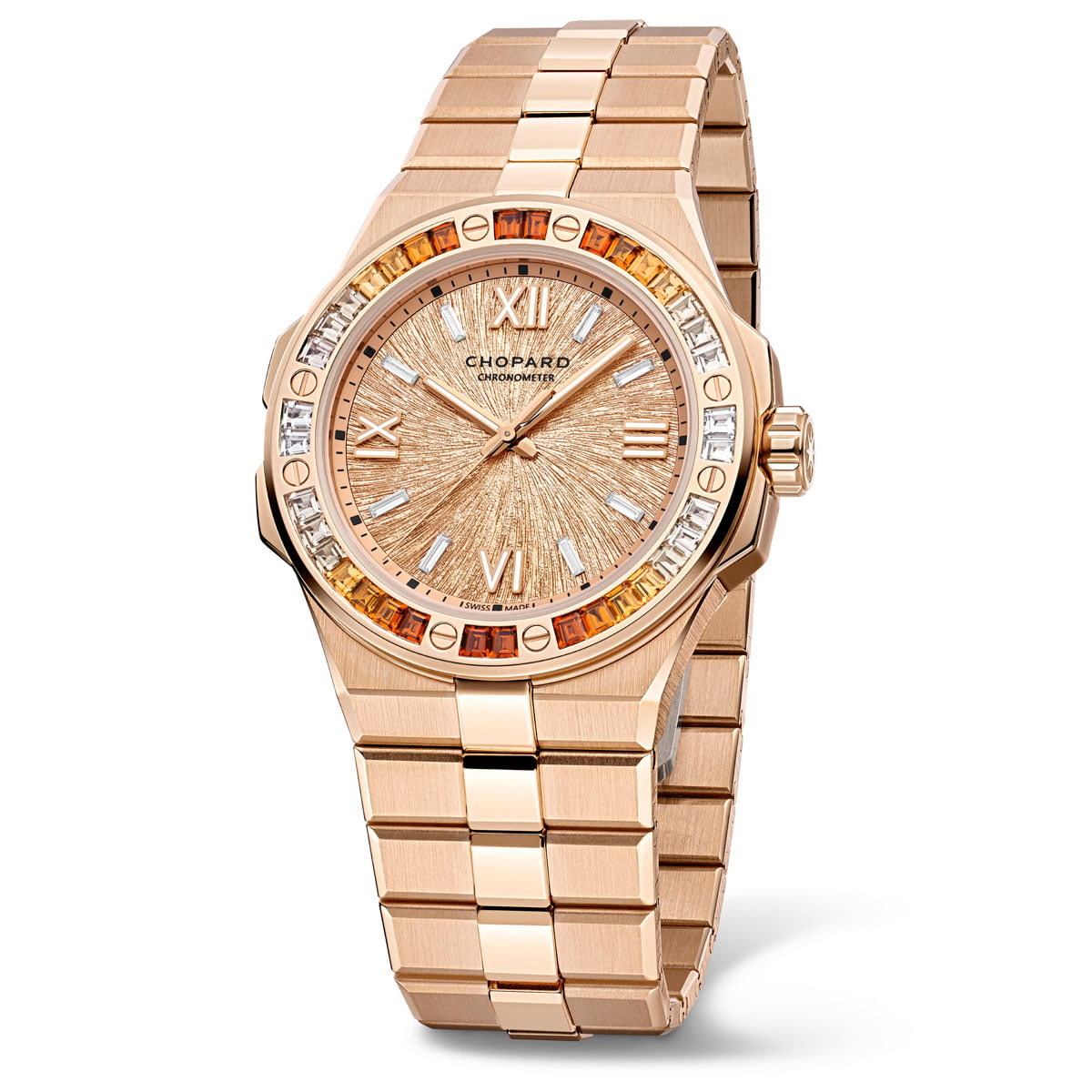 De Alpine Eagle Summit bestaat uit vier nieuwe modellen met een diameter van 41 millimeter, met wijzerplaten in luminescerende tinten en randen bezet met edelstenen die in kleur verlopen. Trouw aan de toewijding van de fabrikant aan duurzame luxe, zijn deze horloges vervaardigd in ethisch 18-karaats geel-, wit- of roségoud. Ze kloppen allemaal op het ritme van het Chopard 01.15-C-uurwerk, waarvan de precisie wordt gegarandeerd door een chronometercertificering.