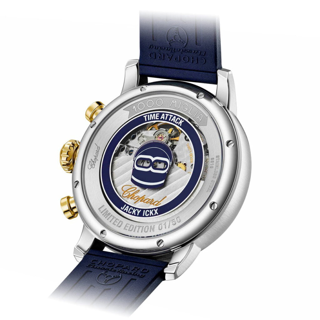 Voorafgaand aan de Mille Miglia brengt Chopard elk jaar een nieuw, gelijknamig model uit. In 2024 wordt met het horloge niet alleen de prestigieuze klassiekerrally geëerd, maar ook de befaamde Belgische (oud-)coureur Jacky Ickx.