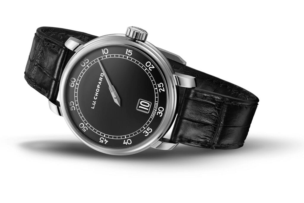 Technische aantrekkelijkheid wordt geboden door het L.U.C 98.06-L uurwerk met een jumping-hour complicatie. Elk uur springt de tijd moeiteloos naar een nieuw getal, weergegeven in een venster op 6 uur. Het L.U.C 98.06-L uurwerk met het prestigieuze ‘Poinçon de Genève’-keurmerk biedt een gangreserve van 8 dagen en is een in-house kaliber, ontworpen en vervaardigd in de Chopard Manufacture in Fleurier.