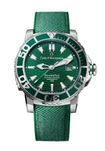 De release van dit jaar, de Carl F Bucherer Patravi ScubaTec Verde, wordt, zoals de naam al doet vermoeden, gepresenteerd met een prachtig groen gelakte wijzerplaat met passende golfdetails.