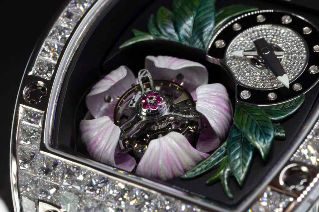 De RM 19-02 Tourbillon Fleur is een limited edition van dertig stuks die elk uniek zijn. Het horloge wordt niet meer gemaakt, maar een exemplaar is alweer verkrijgbaar als pre-owned bij Ninety Geneva.
