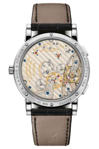 In 2005 gaf A. Lange & Söhne de complicatie voor een tweede tijdzone een onderscheidend gezicht in de Lange 1 Time Zone. Naast de thuistijd geeft het uurwerk de tijd weer in een tweede zone, gemakkelijk te selecteren dankzij de ring van steden rond de wijzerplaat die de 24 tijdzones vertegenwoordigen. In de tweede generatie, gepresenteerd in 2020, werd het kosmopolitische model uitgerust met het nieuwe manufactuurkaliber L141.1, met een intuïtieve indicatie van de zomertijd, waardoor de functionaliteit van dit horloge nog verder werd uitgebreid. Nu toont de nieuwe editie van de Lange 1 Time Zone zich met een kast van 950 platinum in combinatie met een rhodium wijzerplaat, wat resulteert in een uitgesproken klassieke look, een primeur voor dit model.