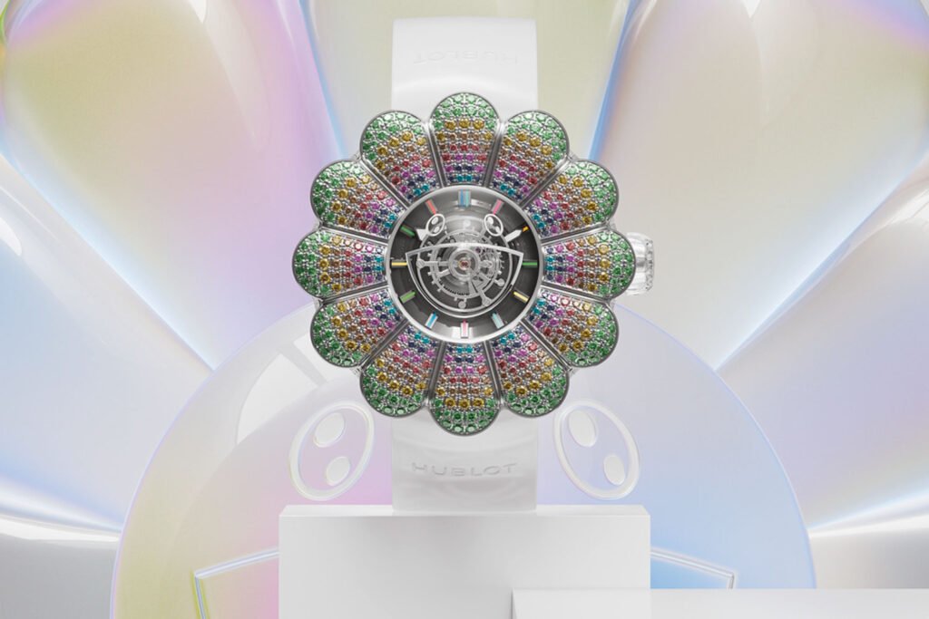 Wil Hublot met de centrale tourbillon de haute horlogerie weer in de schijnwerpers te zetten? Of is het een kindertekening van een madeliefje met twaalf bloemblaadjes van 444 edelstenen? Hoe dan ook, volgens Hublot ligt de kracht van de MP-15 Takashi Murakami Tourbillon Only Watch in het feit dat iedereen het zal zien als symbolisch voor wat zij waarderen. Haute horlogerie ontmoet haute joaillerie in dit zeer creatieve horloge, geïnspireerd op de iconische lachende bloem van kunstenaar Takashi Murakami.