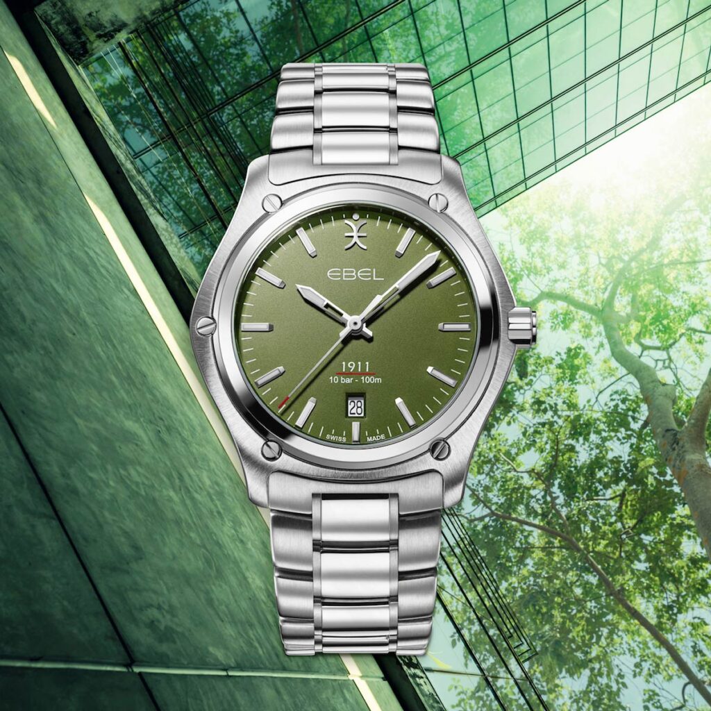 Het is niet gek dat Ebel zo toegewijd is aan Moeder Natuur. De ontwerpen zijn vaak geïnspireerd op de natuurlijke kleuren en materialen van onze planeet, zoals aarde, mineralen, water, planten en fauna. Speciaal voor World Environment Day op 5 juni lanceert het horlogehuis twee nieuwe ontwerpen. De twee modellen zijn op de natuur geïnspireerde versies uit de 1911-collectie van Ebel: de Grande Green voor dames en de Gent Petroleum voor heren. Centraal staat een koele kleur groen, een 1-op-1-verwijzing naar de natuur.