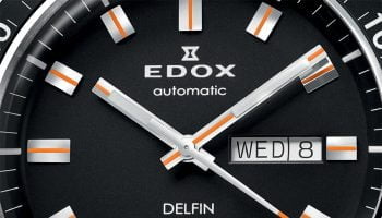 Over five decades ago Edox launched the Delfin. The original Delfin had a double caseback and double ‘O’ ring construction for the crown and pushers which gave the watch exceptional strength and underwater protection; revolutionary at that time. The new Delfin swims in its predecessor’s, uhm, fins?