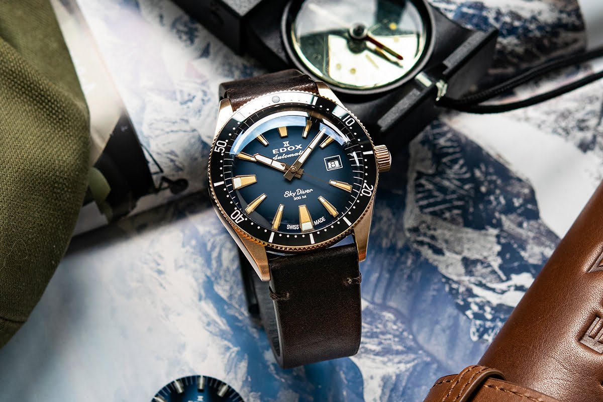 De Edox SkyDiver heeft zijn wortels in de jaren zestig, maar misstaat in geen enkele moderne setting. En dankzij deze prachtige nieuwe uitvoering voelt hij nu nog moderner.