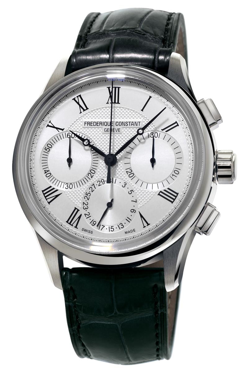 That is a little visual trick that Frederique Constant played because this chronograph does not have an hour counter. Instead, the subdial at six o’clock is dedicated to the date. This is the perfect solution, as a date window would have a negative impact on the clean and beautiful design of the Flyback Chronograph.