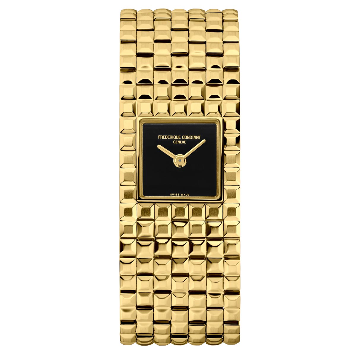 Het in Genève gevestigde horlogemerk Frederique Constant breidt de Classics-collectie uit met een opvallende nieuwe uitvoering. Ter gelegenheid van de eerste verjaardag van de Classics Manchette verschijnt het model nu in een gouden uitvoering, gecombineerd met een diepzwarte wijzerplaat van onyx.