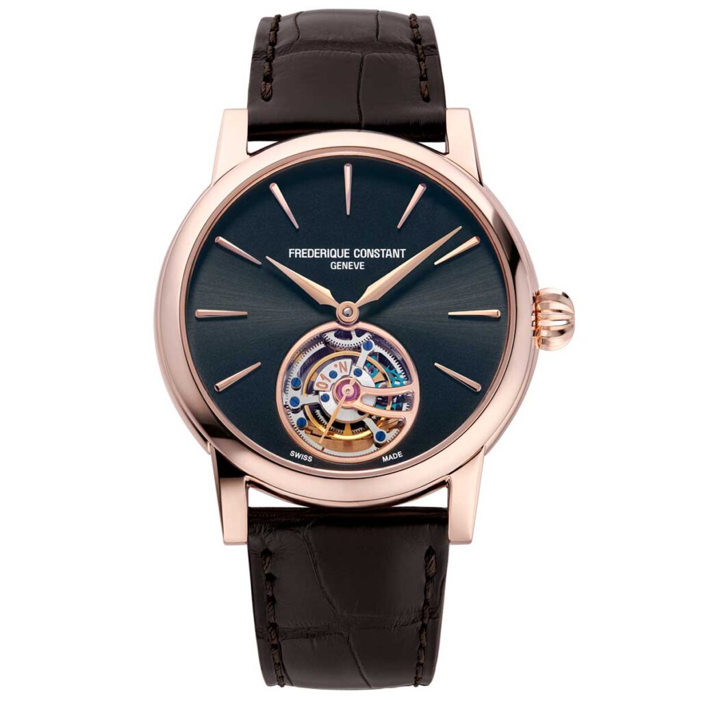 De Classic Tourbillon Manufacture is bevestigd op een donkerbruine, mat afgewerkte alligatorleren band, met een vouwsluiting waar trots het schild van Frederique Constant op prijkt, een bijzonderheid die is voorbehouden aan de Manufacture-creaties.