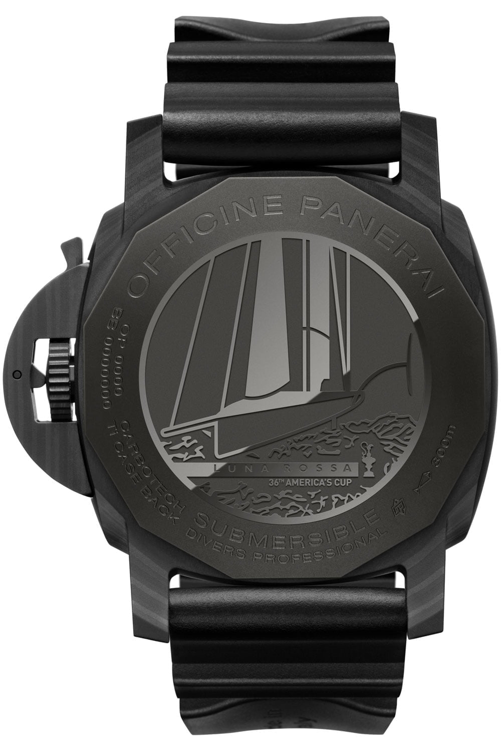 Dit vertaalt zich tevens in een nieuwe collectie Panerai horloges. Het eerste model uit de collectie is de Luna Rossa Challenger Submersible (PAM 1039). Het horloge is gemaakt van Carbotech en er is tevens een stukje van het zeildoek van het Luna Rossa AC75-schip in verwerkt. Corrosievrij en waterdicht tot ca. 300 meter. De advieswinkelverkoopprijs is € 21.000.