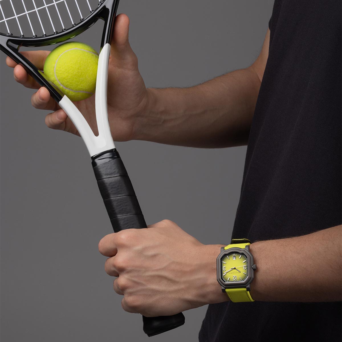De Maestro GC Sport Tennis in Optic Yellow is een gelimiteerde editie van 200 stuks en is direct geïnspireerd op de dynamiek van de tennissport. De felgele, korrelige wijzerplaat verwijzend naar een tennisbal, geeft het horloge een uitgesproken sportieve uitstraling en sterke visuele identiteit.