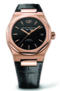 Nieuw is de Laureato niet. Sterker nog, het horloge werd voor het eerst geïntroduceerd in 1975, wat overigens nog vóór de Patek Philippe Nautilus was – just mentioning. Het horloge werd enkele jaren geleden opnieuw uitgebracht door Girard-Perregaux, in de hoop dat ze mee konden liften met het ongekende succes van Génta-creaties als de Royal Oak en eerder genoemde Patek.