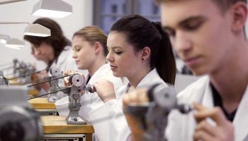 Nineteen of the new graduates have learned the traditional craft of watchmaking, and another four now begin their careers as precision toolmakers. The Saxon watch manufactory Glashütte Original dedicated Thursday July 6th, 2017 entirely to the next generation of watchmakers: in the atrium of the manufactory 23 graduates of the firm’s “Alfred Helwig” School of Watchmaking celebrated the successful conclusion of their three-year course of studies. Along with eight female and eleven male watchmakers, one female and three male toolmakers accepted congratulations from their families, friends, representatives of Glashütte Original, teachers and former students. The course of studies for the watchmakers lasted three years, for the toolmakers three and a half. Training at the Alfred Helwig School of Watchmaking. This year’s graduates have already provided ample evidence of their talent, exceptional manual dexterity and sense of tradition and innovations in their craft during their studies. Glashütte Original has been training watchmakers and toolmakers in its “Alfred Helwig” watchmaking school since 2001.
