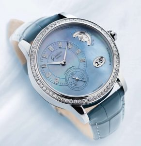 Of the three women’s lines produced by Glashütte Original the Panomatic Luna is without a doubt the least traditional. The Pavonina and the Lady Serenade are the other two women’s collections of the house, which is located in the south-eastern corner of Germany.