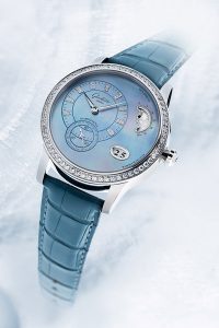 A light blue Louisiana alligator leather strap completes the blue theme of this 39.4mm watch. The manufacture calibre 90-12 with 42-hour power reserve can be admired through the sapphire crystal case back. The price of the Glashütte Original Panomatic Luna Boutique Edition is € 17,500 and the watch is only available from one of Glashütte Original’s own boutiques.