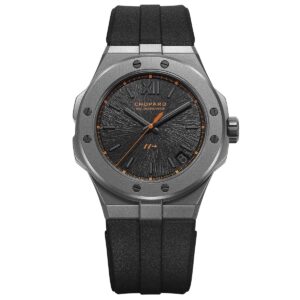Sinds 2019 groeit Chopards Alpine Eagle-collectie met technische innovaties. De nieuwe Alpine Eagle 41 SL Cadence 8HF, gelimiteerd tot 250 stuks, introduceert het lichtste model ooit. De 41mm kast, kroon en lunette zijn van gekeramiseerd titanium. Het hoogfrequente Chopard 01.14-C-uurwerk bereikt dankzij siliciumonderdelen 8 Hertz zonder extra energieverbruik.