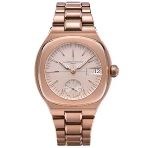 De Sport Auto 79 viert Laurent Ferriers 15-jarig jubileum en herdenkt de derde plaats bij Le Mans 1979, waar het merkidee ontstond. Volledig uitgevoerd in 5N roodgoud, met een aerodynamisch geïnspireerde kast en crèmekleurige wijzerplaat, ademt het ingetogen elegantie. Binnenin tikt het automatische LF270.01 kaliber met microrotor, 72 uur gangreserve en met de hand afgewerkte details. Een eerbetoon aan vakmanschap, passie en een race die geschiedenis schreef.