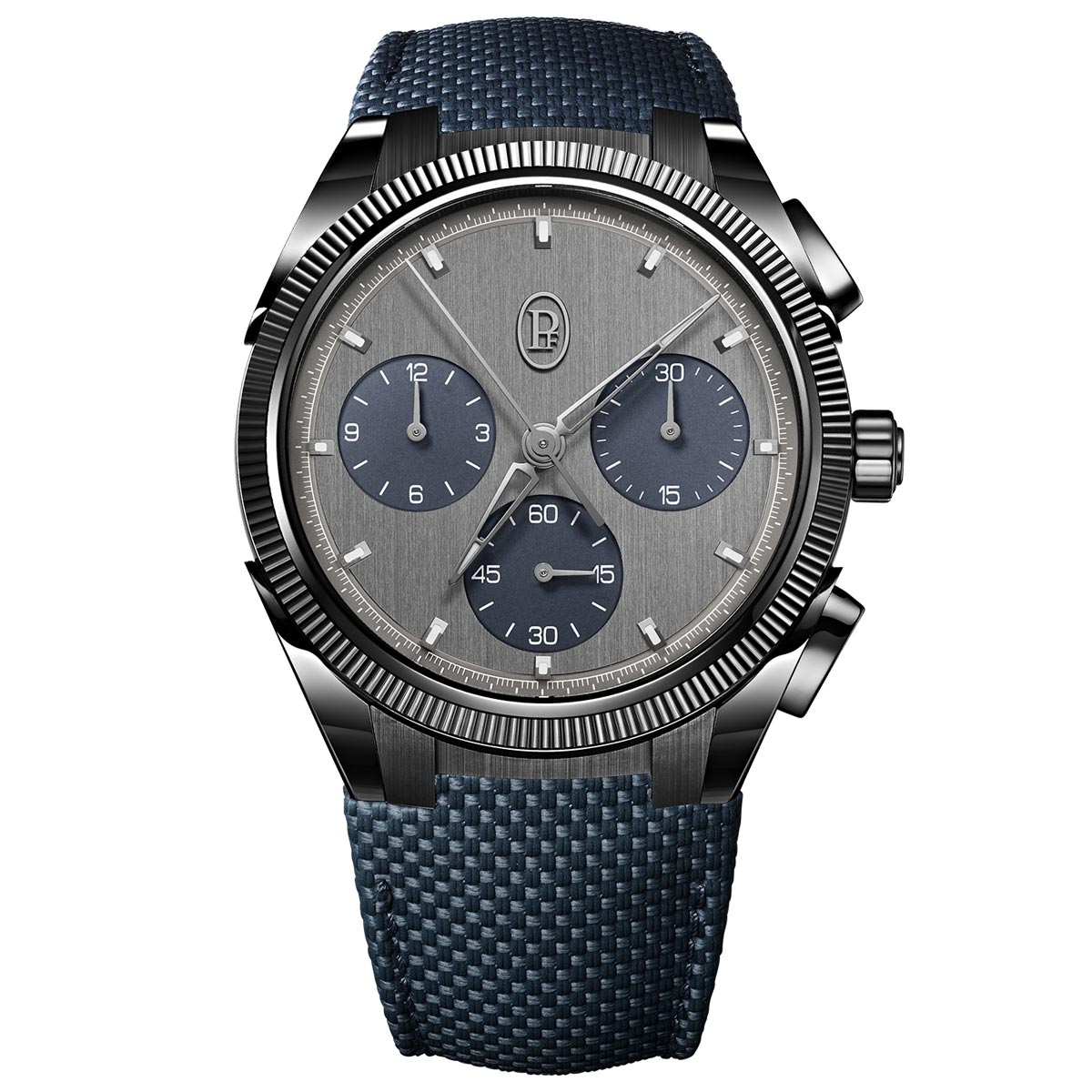 Parmigiani Fleurier kiest met de Tonda PF Chronograph Sport voor innovatie: het eerste horloge volledig vervaardigd uit Cermet, een legering van keramiek en metaal. Kast, lunette, kroon, drukknoppen en gesp zijn gemaakt van dit lichte, krasbestendige materiaal, bekend uit de lucht- en ruimtevaart. Binnenin tikt het COSC-gecertificeerde PF070-uurwerk met 36.000 Vph.