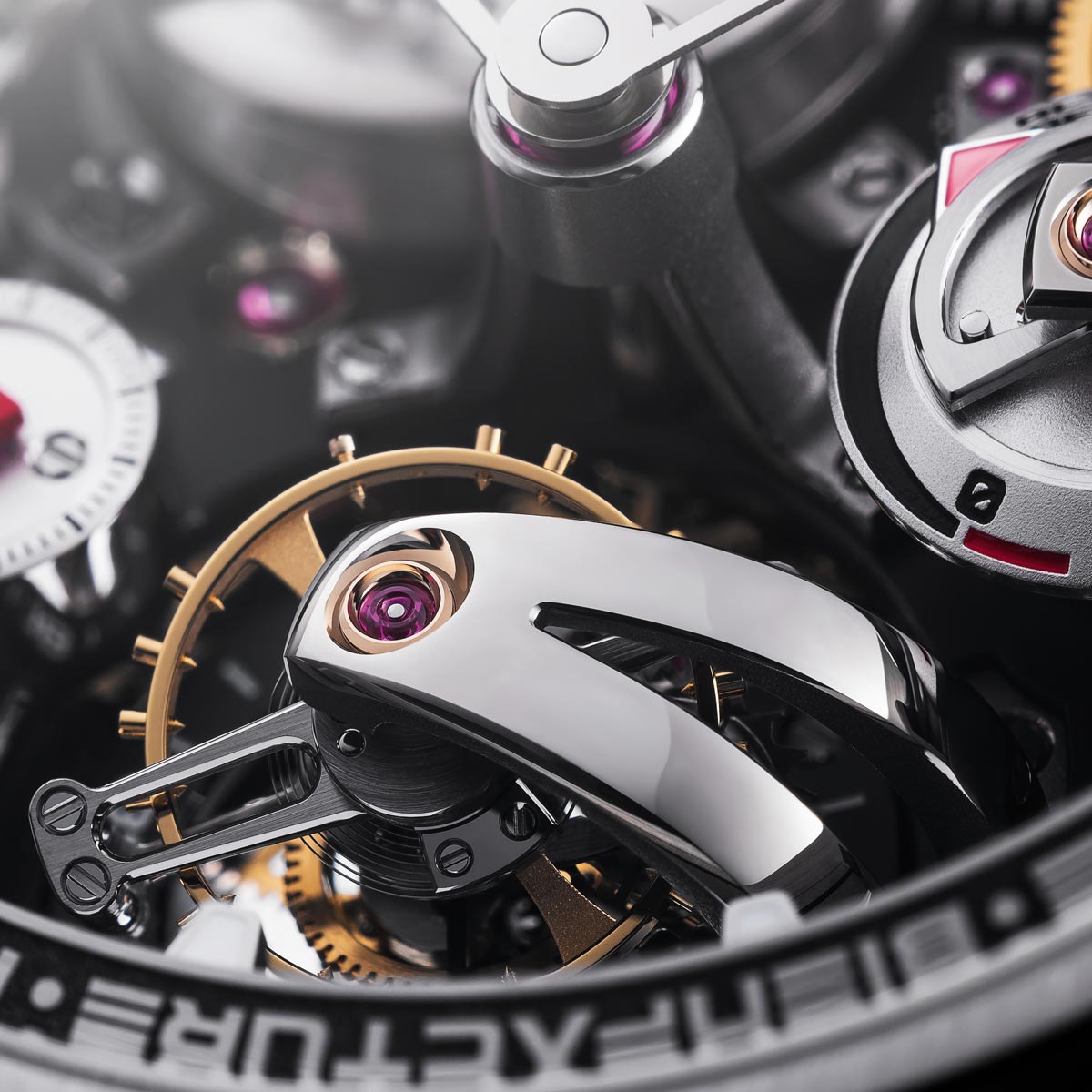 Vanaf het eerste moment brak dit model radicaal met traditie. Geen klassiek uurwerk verborgen in een kast, maar een fascinerend mechanisch landschap waarin elk onderdeel zichtbaar en betekenisvol is. Alles draait hier om beleving, licht dat speelt met diepte, vormen die lijken te zweven en techniek die zich zonder enige terughoudendheid toont. Het resultaat is een horloge dat niet alleen de tijd weergeeft, maar vooral verwondering oproept.