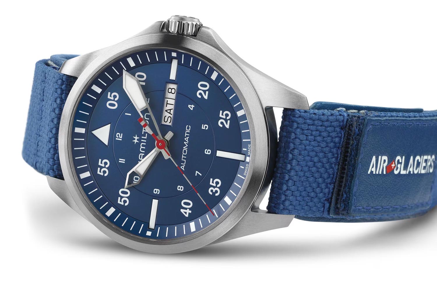 Gedragen door filmhelden in meer dan 500 films en tv-series hebben Hamilton special edition horloges een reputatie als ‘horloges van de film’. Voor de Hamilton Khaki Aviation Pilot Air-Glaciers Special Edition is een samenwerking aangegaan met andere, tot de verbeelding sprekende helden: de piloten van de Zwitserse luchtreddingsdienst Air-Glaciers. Vanwege betrouwbaarheid, functionaliteit en robuuste kasten is het Hamilton Khaki Aviation horloge een populaire keuze onder luchtvaartliefhebbers en professionele piloten.