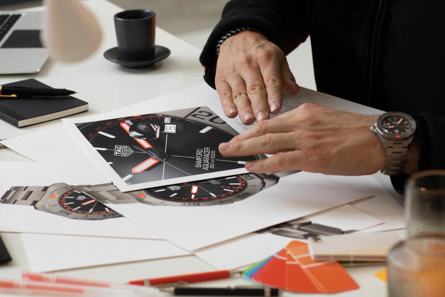 Nou lijkt het concept van een tool watch haaks te staan op het idee achter luxe, maar die muggenzifterij moeten we maar even aan de kant zetten voor waar het hier daadwerkelijk om gaat: de nieuwe Aquaracer. Want daar valt wel heel veel goeds over te zeggen. Waar Bamford namelijk in geslaagd is, is om dit horloge weer helemaal op de kaart te zetten. Wie aan TAG Heuer denkt, roept natuurlijk al gauw ‘Carrera’ of ‘Monaco’, maar Bamford heeft van het bijna vergeten duikneefje in de collectie van de Zwitsers weer een bijzonder begeerlijk prinsje gemaakt.
