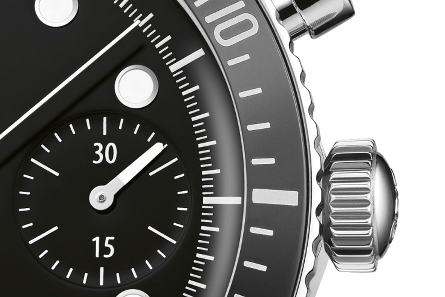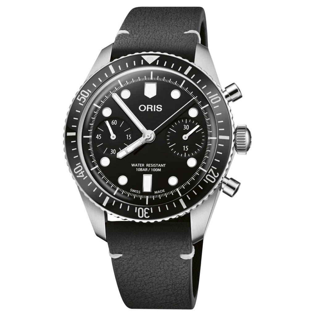 Het nieuwe model heeft een kleinere kast (40 millimeter) en een zwart monochroom wijzerplaatontwerp. Het heeft de uni-directionele bezel, maar de stalen kast heeft een waterdichtheid tot honderd meter. Het uurwerk van dienst is het automatische Oris-kaliber 771. De Divers Sixty-Five Chronograph is verkrijgbaar met een stalen band of een band van duurzaam geproduceerd hertenleer.