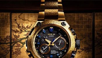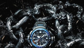 A look at the new MRG confirms his story, which is told in ruggedly shaped titanium and angular details. As well as ruggedness there is also room for sophistication, because a DLC coating with a subtle ‘Japanese blue’ glow is applied and gold is used in the movement to ensure the best possible conductive characteristics. With respect to functions the advanced movement system that receives both GPS and radio signals for its time calibration is worth mentioning, as is the Dual Dial World Time that simultaneously shows the time intwo different cities. This limited and extremely luxurious G-Shock high point (for now, anyway) costs 5,500 euro.