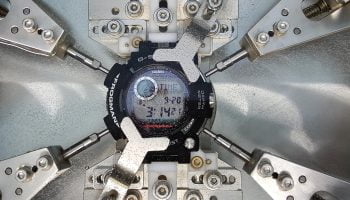 Because the watch was created from ingenious madness the development of the G-Shock has never been conventional or restrictive. The absolute high point in the G-Shock collection is the MRG-G1000RT that was presented during BaselWorld. A considerable delegation of Casio representatives presented the model with its case made of a crystallised titanium alloy that refers to the traditional Katana Samurai swords. Only 100 copies will be made of this special model. In the BaselWorld booth designer Kazuma Kobayashi – a young designer who is following in the footsteps of the legendary Ibe – explains that he is inspired by cars and planes, but also tanks.